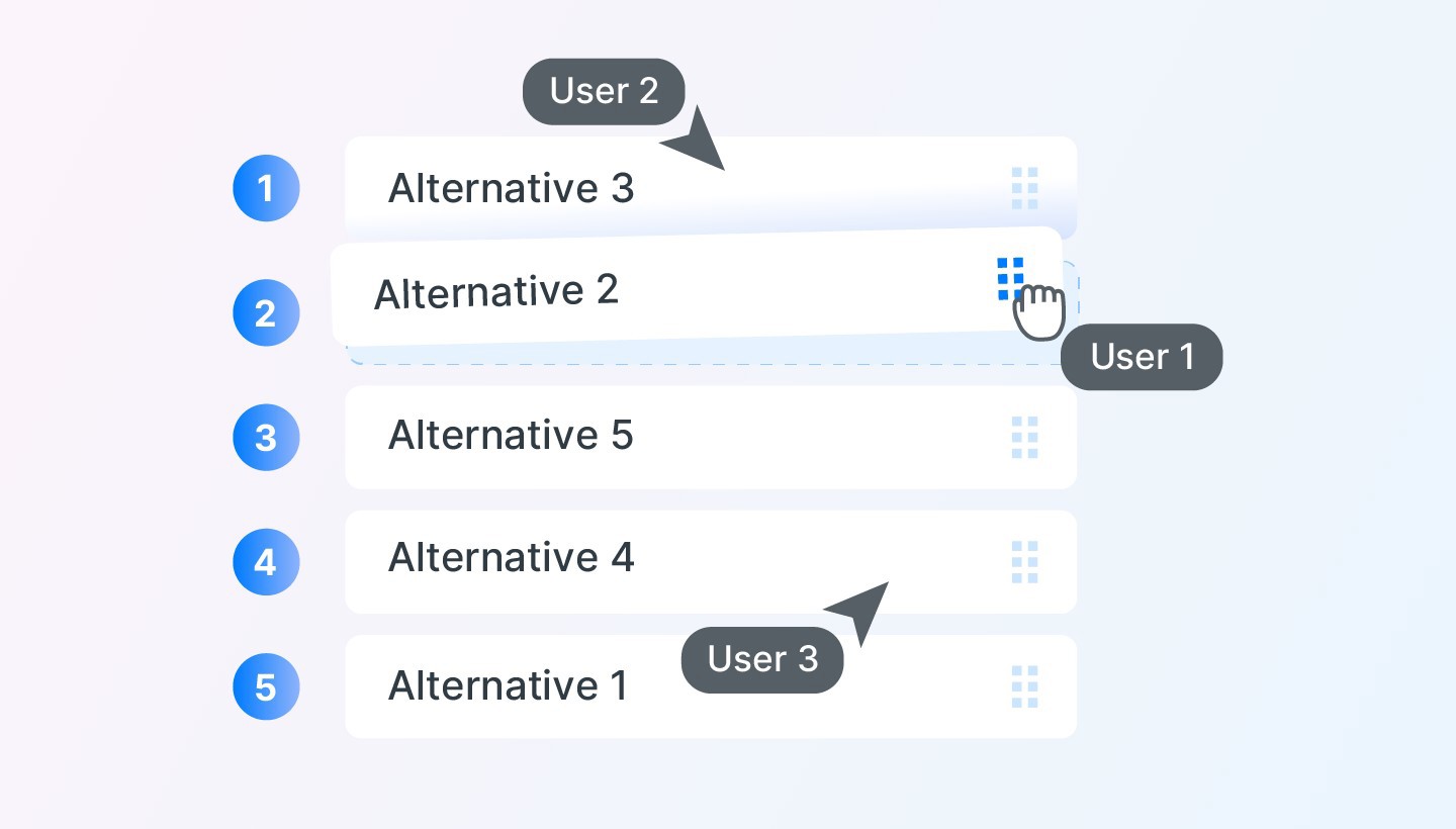 Multivoting is a group decision-making tool useful for narrowing down a list of options while incorporating the perspectives of multiple individuals. Each participant votes anonymously on their preferred choices ranked from a scale of 1-5. The votes are then collected and summed together for each option, and the options with the highest score are selected for further voting. Multivoting lacks a formal discussion process to establish consensus and uncover key information when considering alternatives and does not include objective evaluation of decision criteria. Nevertheless, multivoting is a simple way to include input from multiple individuals when prioritizing objects of interest.